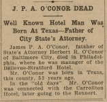 Of course, Herbert R. O’Conor, the son, mentioned in this obituary, rose to become the 51st Governor of Maryland; serving from 1939 to 1947. He also served in the United States Senate, representing Maryland from 1947 to 1953.